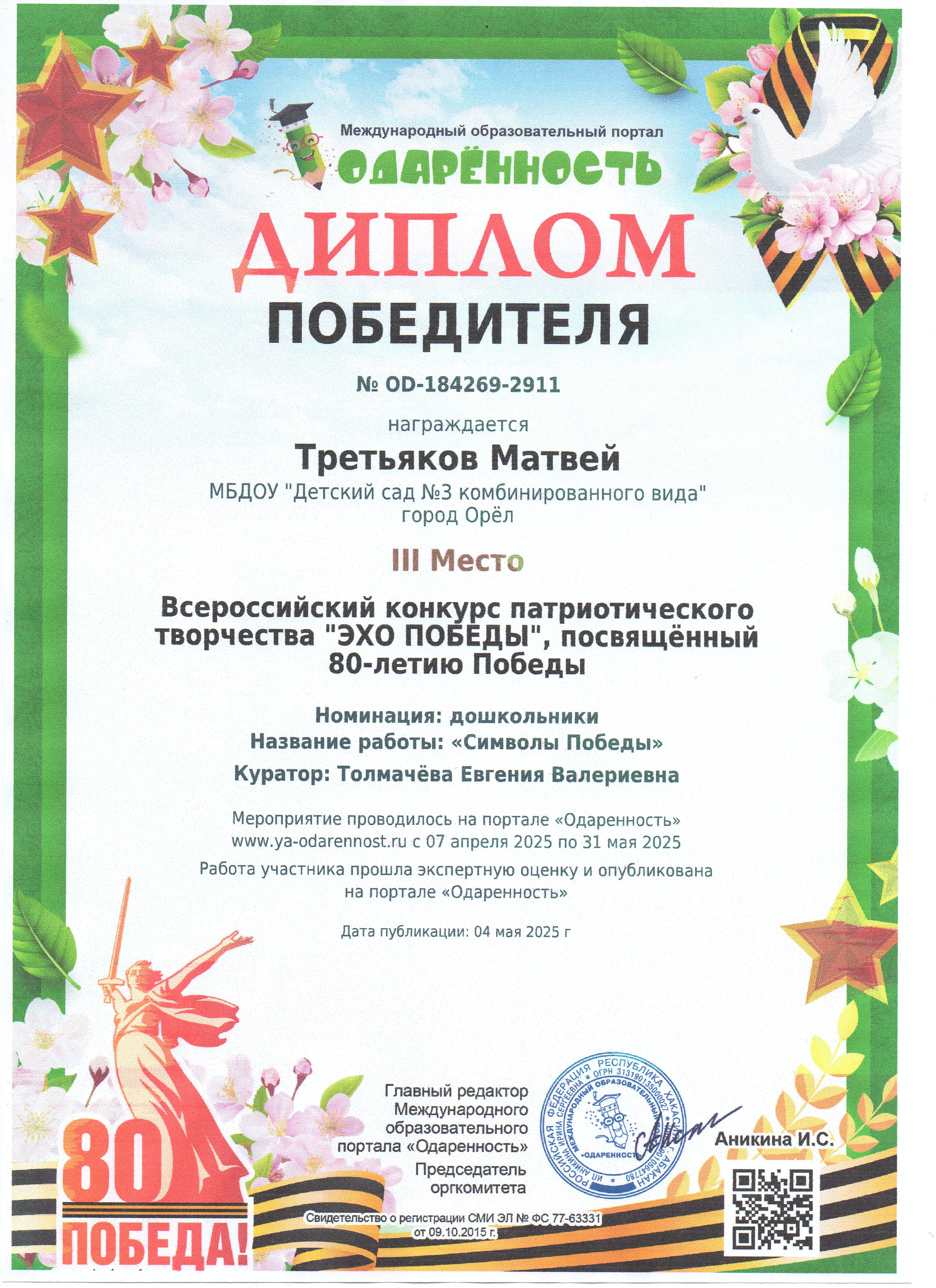 Димлом 1 место Всероссийская олимпиада Буква А Образовательный портал Конкурсита