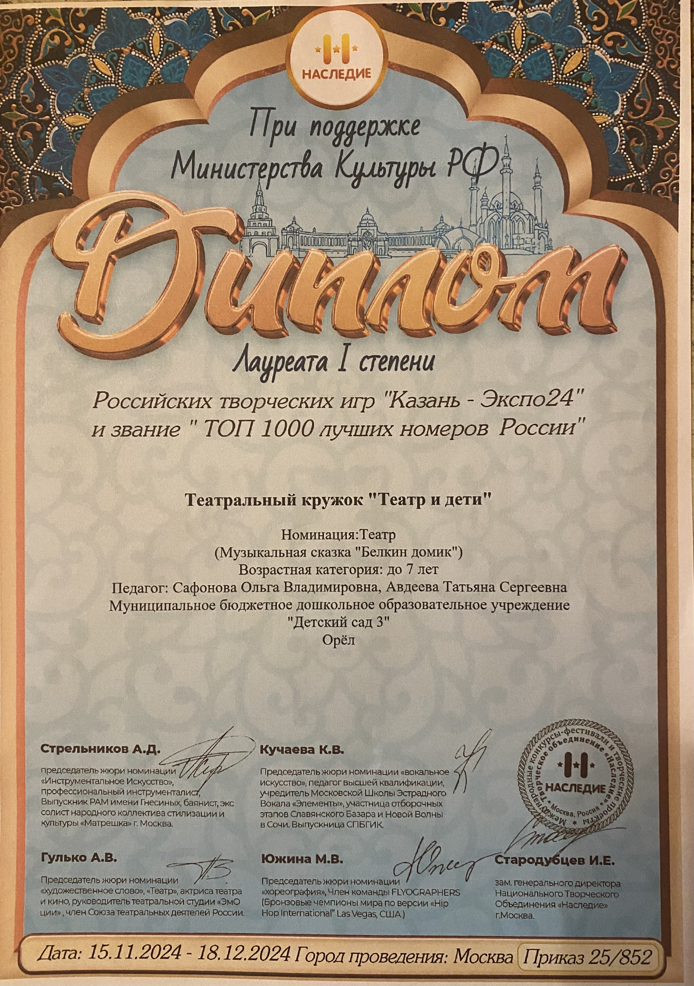 Диплом 1 место Всероссийский конкурс Парад талантов России