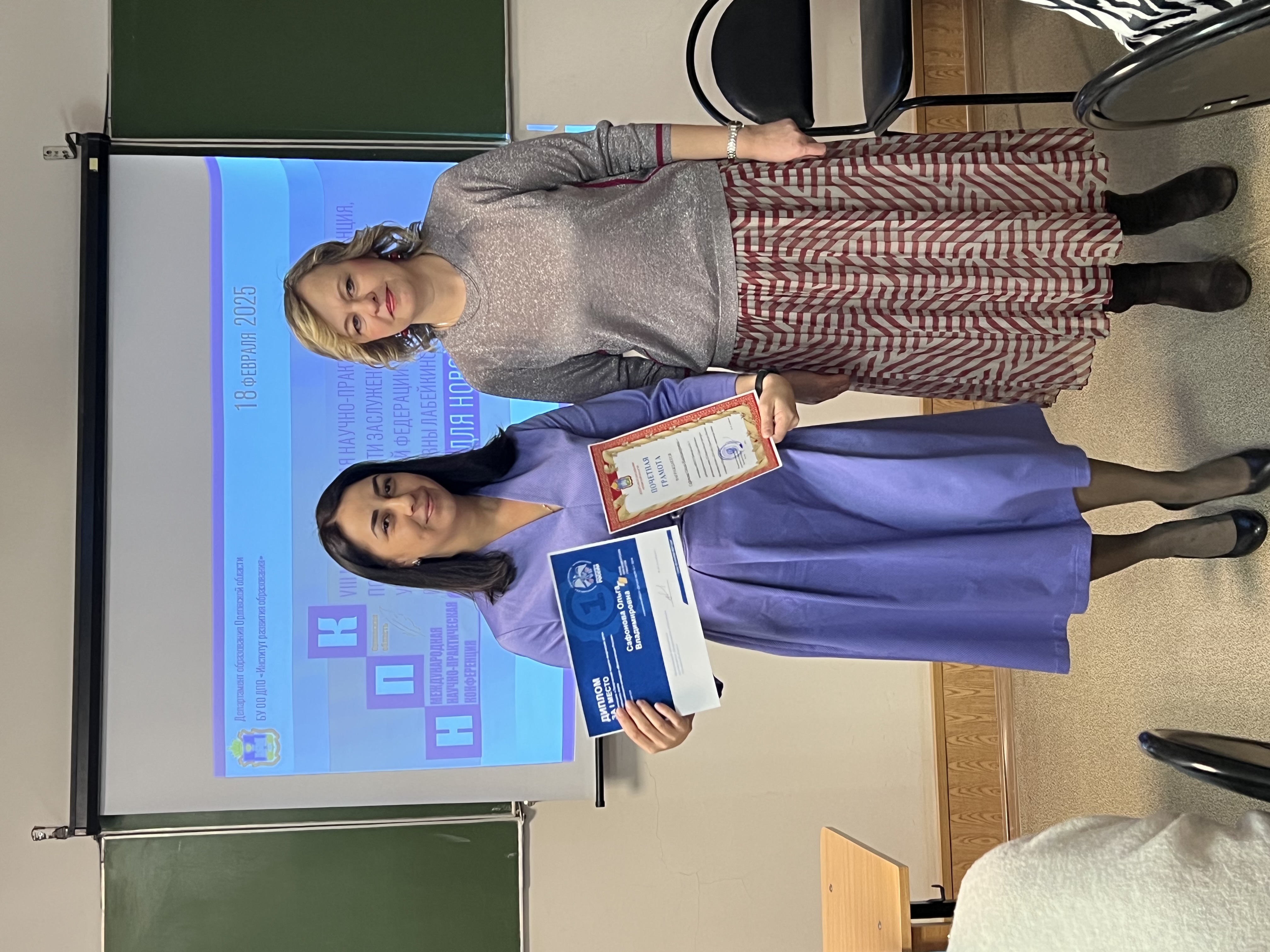 Почетная грамота Управления образования, спорта и физической культуры администрации города Орла. 2025г. Грамота Орловской городской организации профессионального союза работников народного образования и науки Российской Федерации, 2025г. |